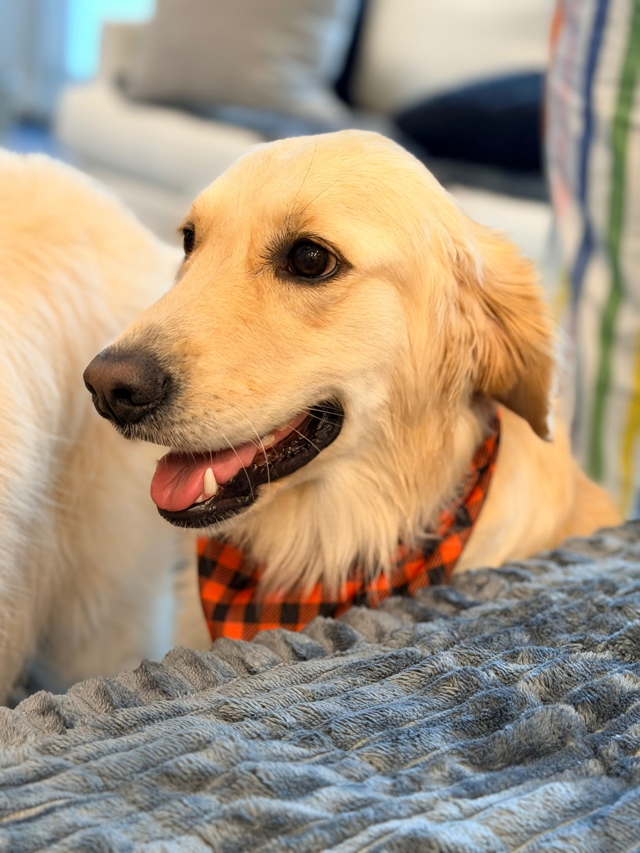 I’m a 2½-year-old adorable Golden girl,about 60 lbs, and I’mbasically made of smiles, sunshine, and snuggles. I love kids of all ages, get along great with other dogs, and I’m happiest when I’m with my people — preferably close enough to lean on you or sneak into your lap if you let me. I’m a super gentle sweetheart, and a total cuddle bug who will plop my head right onto your laptop or in your lap until you remember to use those hands for petting. Remember, snuggles come before emails! Your bed may be spacious, but I will sleep glued to you like a velcro pillow.I’m a great leash walker — unless I spot a bunny, then I forget my manners for a second.I come with a playful personality, a wagging tail, and enough energy to keep you smiling all day. I’m young enough to have fun and be silly but calm enough to chill when it’s time to relax.I’m polite, well-trained, and always try my best to make my humans proud. Smile for the camera? I was born ready — I love showing off my big golden grin. I love being included in whatever you’re doing. If you’re looking for a buddy who wants to be right by your side — watching movies, swimming, going for rides, playing in the yard, or just snoozing at your feet — that’sme!