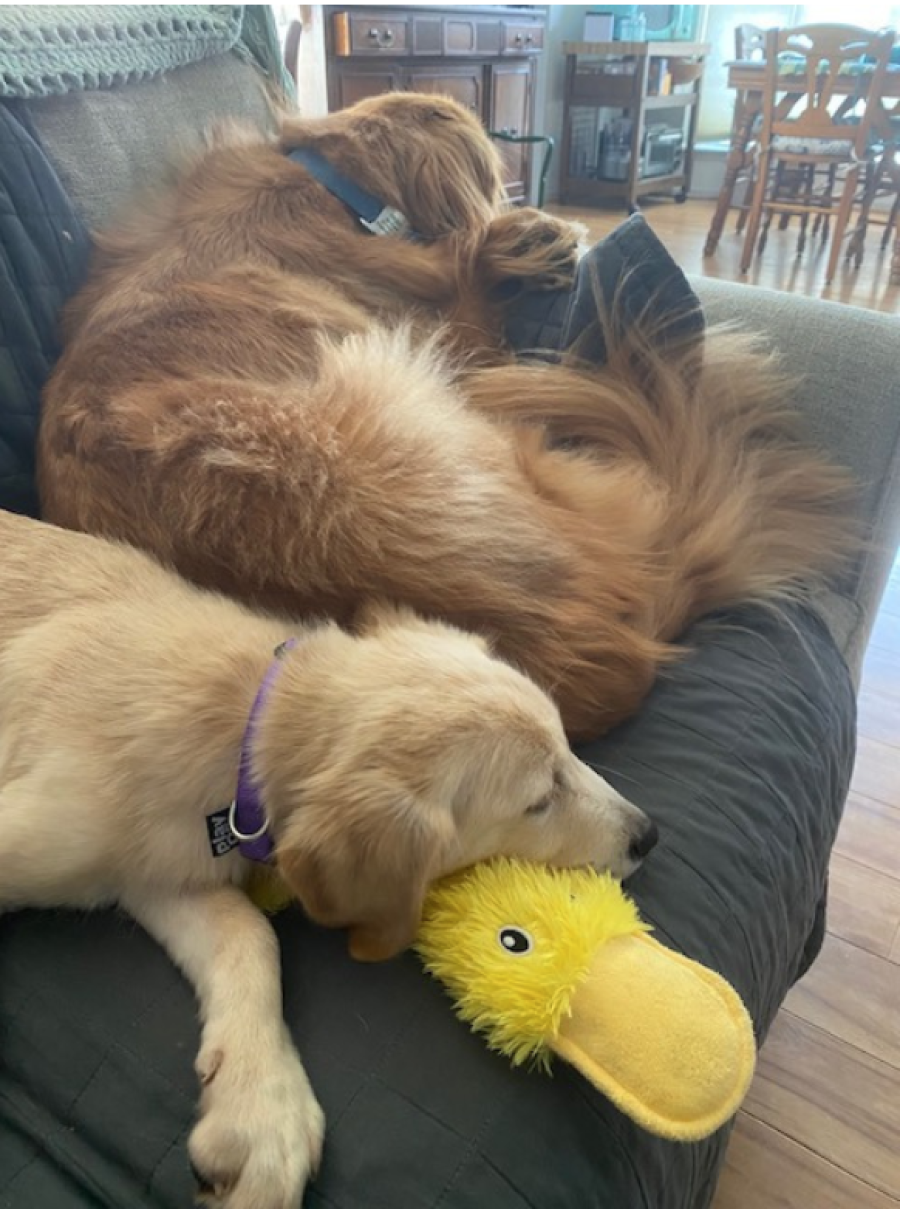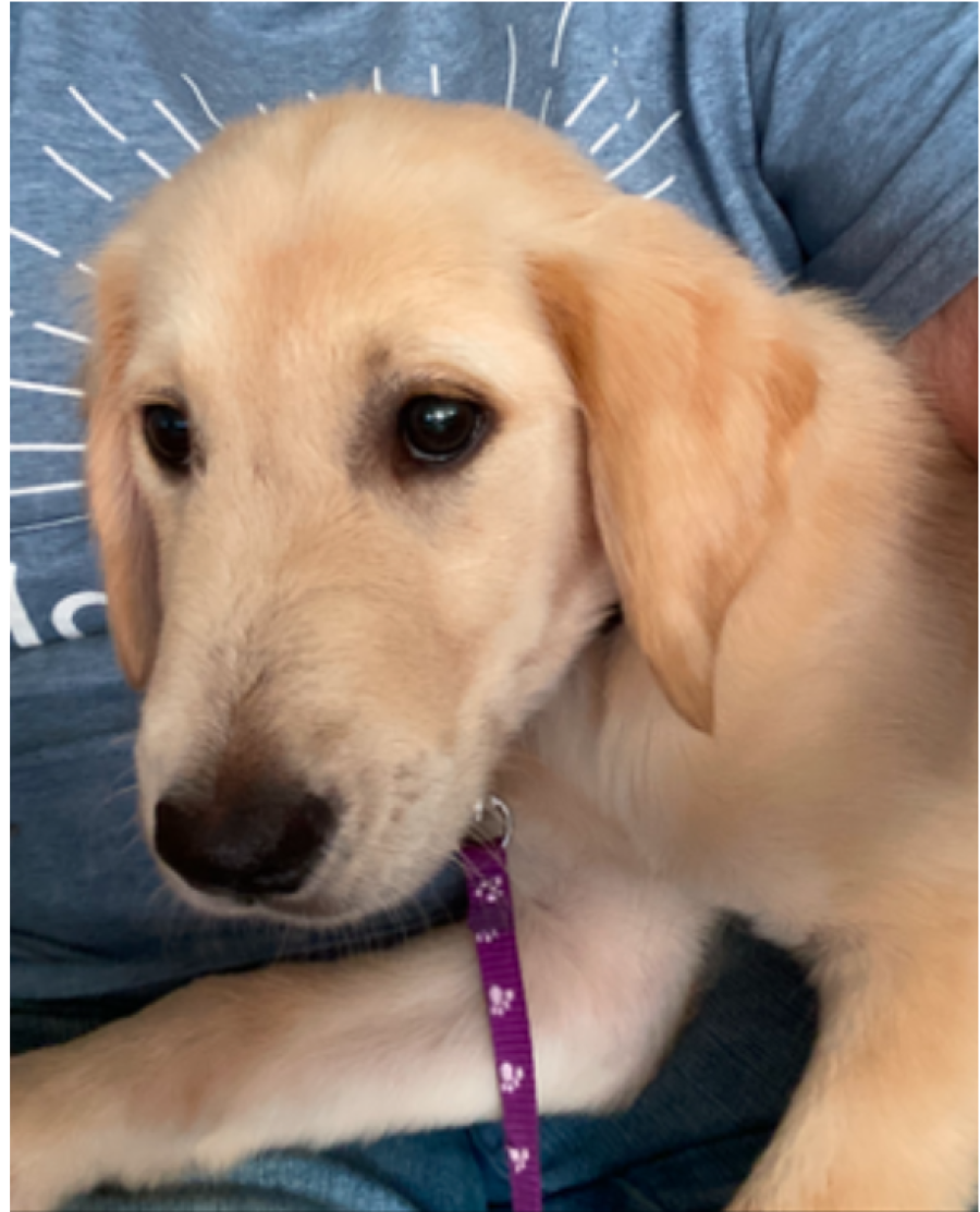 I am being crate trained so I eat and sleep in the crate, but I really spend most of the day with my family; I don’t like to be alone yet. Speaking of eating, I gobble my food, so now I use a slow feeder! I love everyone I meet, and they fuss over me which makes me so proud. I am a lap pup at night before bed…calms me down so I can sleep.